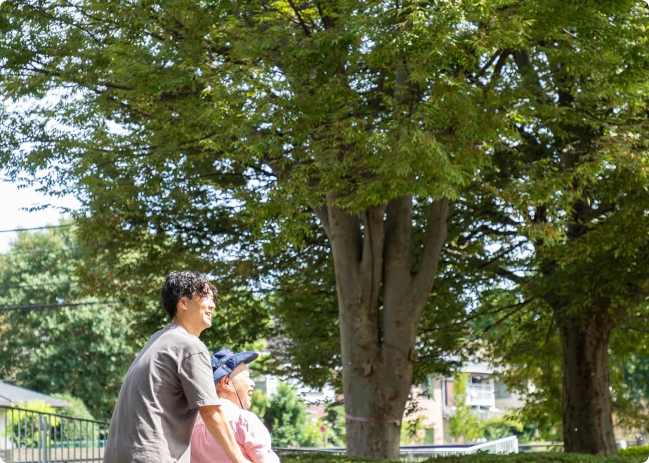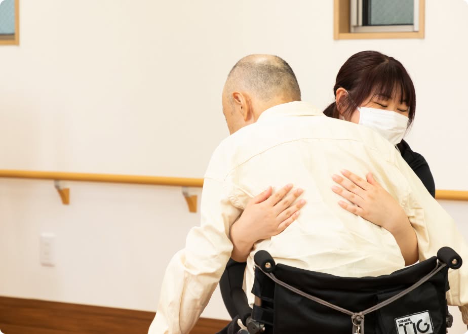 「おかえり」が聞こえる、 もう一つの我が家へ。転ばない、動ける、 重力に負けない体へ。私たちが大切にしているのは、利用者さまお一人おひとりの心に寄り添うことです。これまで施設では難しかった「もっとこうしたい」という想いに応えるため、「聞く力」を何より大切にしています。